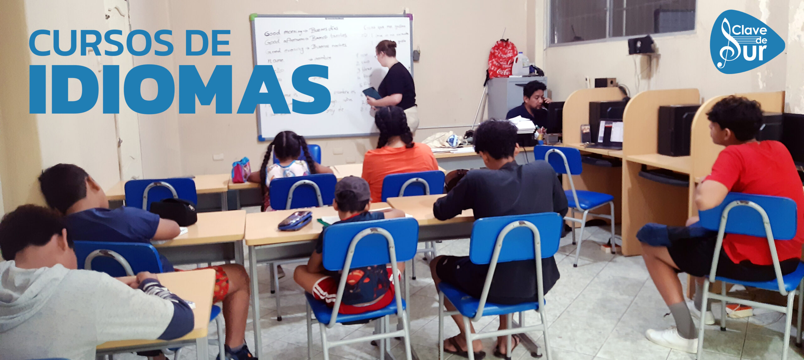 Ya que contamos con la colaboración de voluntarios extranjeros para dar las clases de música y teatro, en Clave de Sur, ellos quieren aportar también a la comunidad con cursos de idiomas.